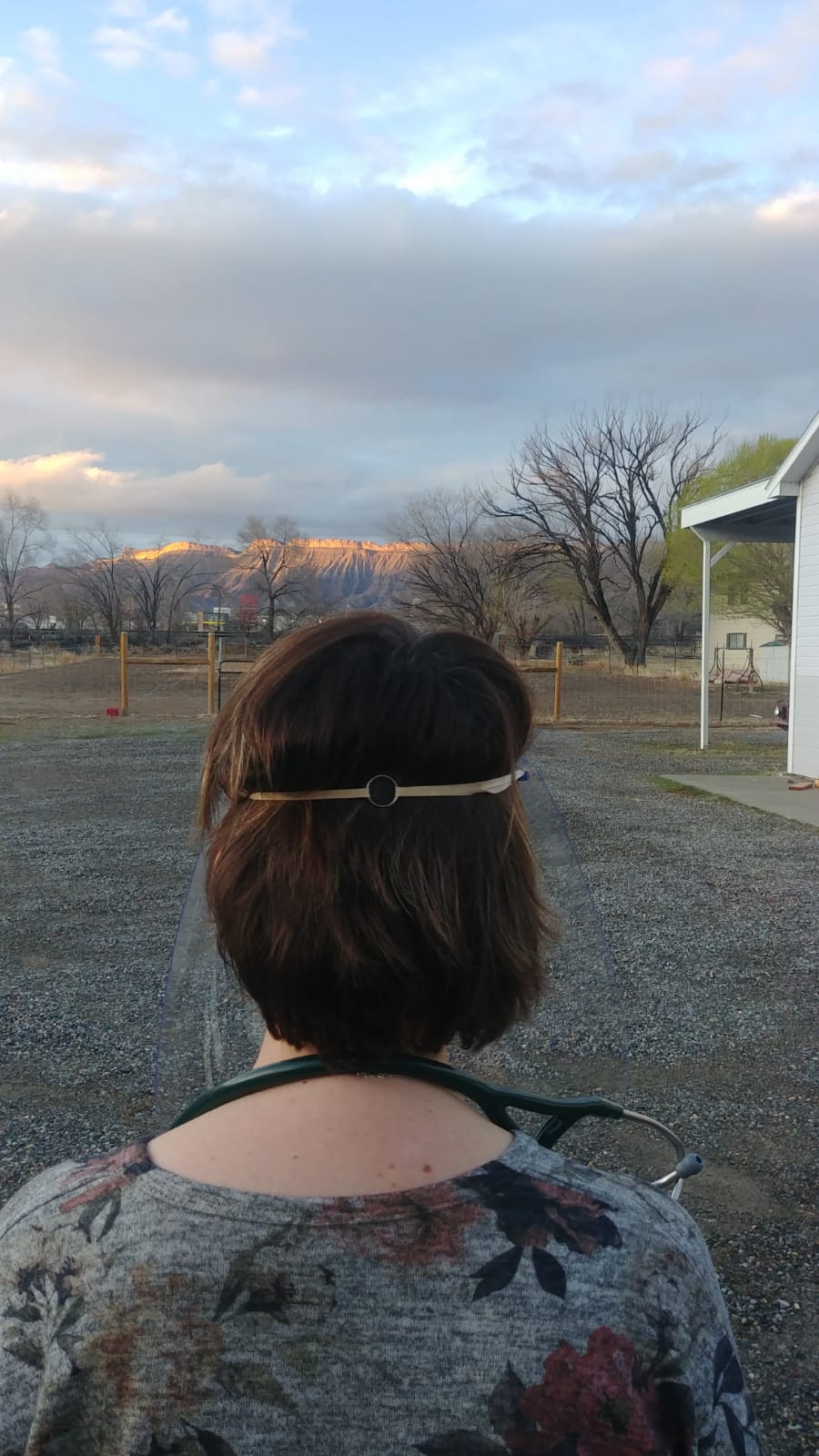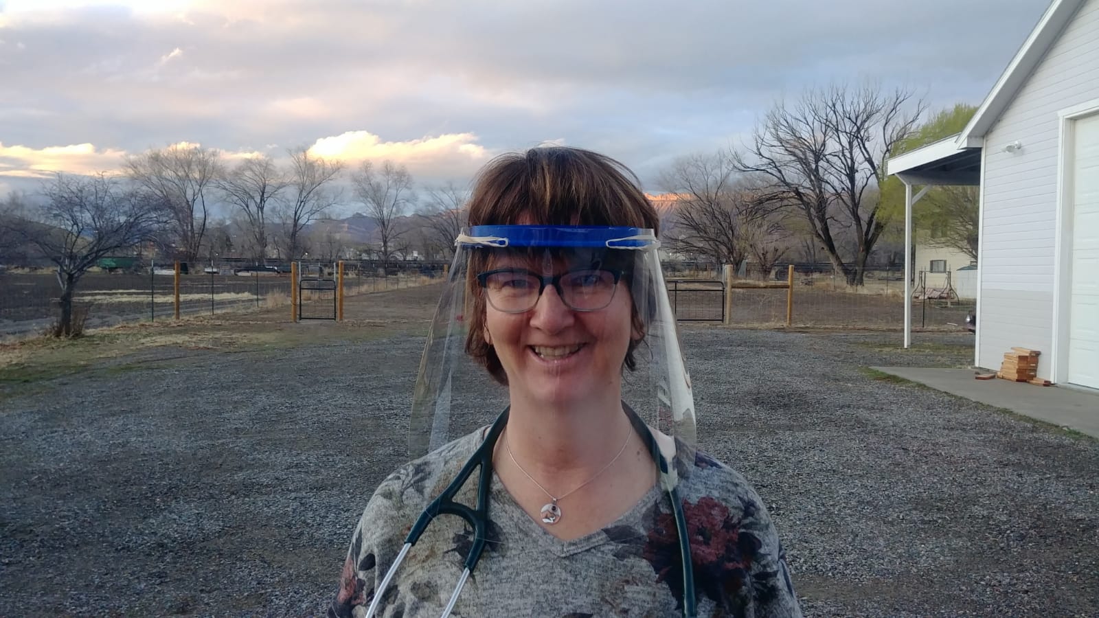 Here is my sister, Dr. Ellissa, M.D., modeling her homemade 3D-printed face shield (made in March 2020). She decided to wear a stethoscope so you would know she’s a real doctor 😉 I already knew that – we both graduated from the same university back in the 80s! Thanks to Dr. Ellissa for providing all of these patterns and recommendations about donating them to non-profit hospices!