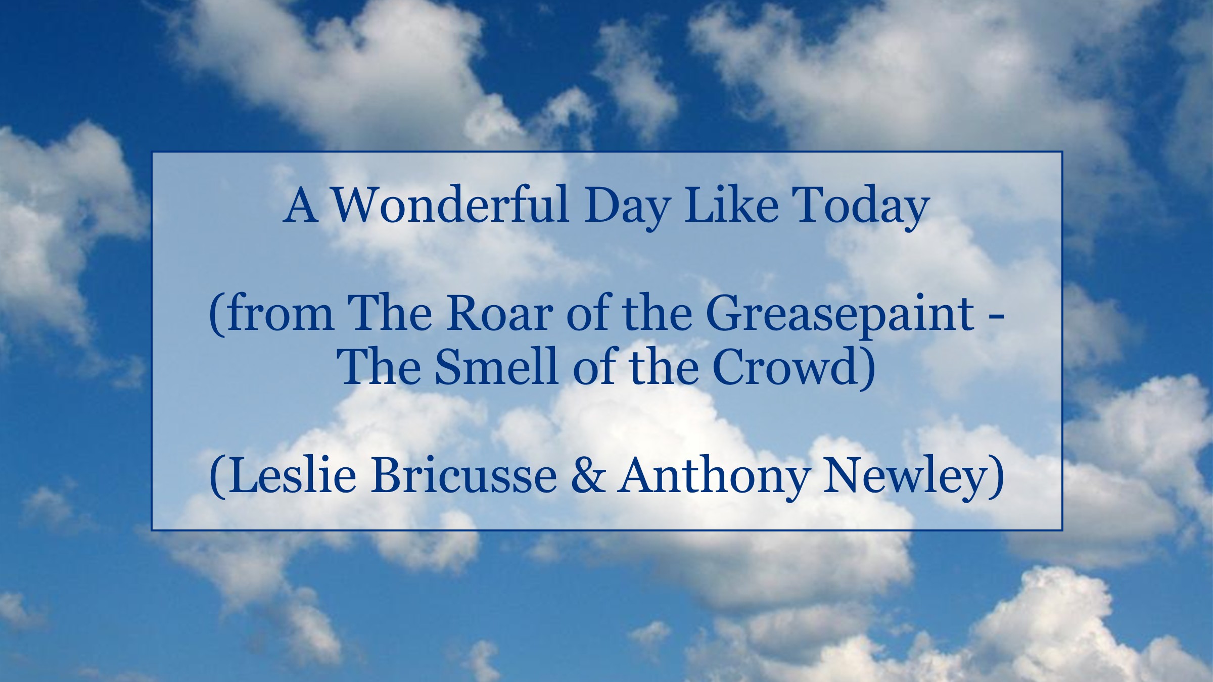 A Wonderful Day Like Today (The Roar of the Greasepaint – The Smell of the Crowd) by Leslie Bricusse & Anthony Newley