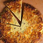 4. Spread the squash and shallot evenly in the skillet and pour the batter over it. Carefully transfer to the hot oven and bake for 30 minutes, or until the farinata is no longer wet in the center and the edges are browned and pulling away from the sides of the pan. Remove the farinata from the oven and cool in the pan for 10 minutes.