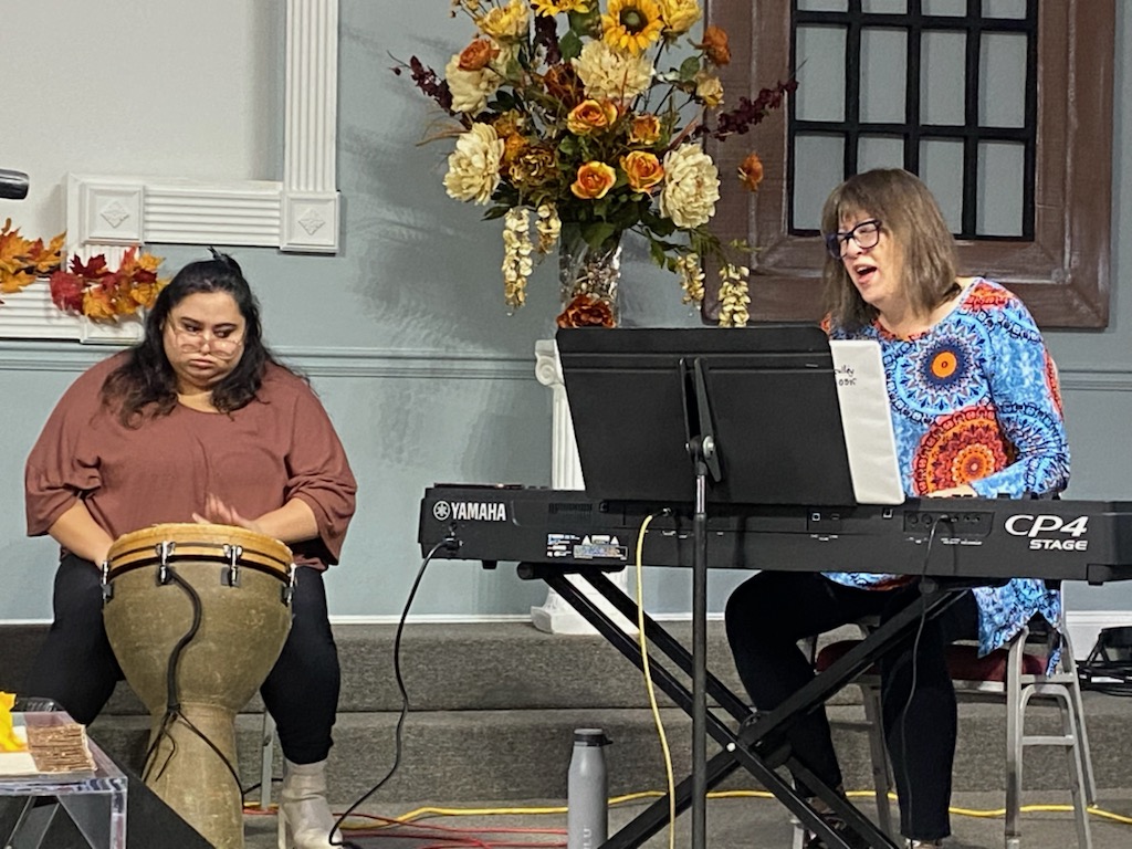 One final instruction before we sing this Psalm – you are welcome to try singing the whole thing, or you may want to just sing the repeated line “His love endures forever,” as those words and their melody are identical in each of the 26 verses. This is not printed on your handout because I only included there the text of the Scripture in the NIV. But in the song version, per the Orthodox tradition, the word “Alleluia” is added at the end of each line, so we’ll be singing “Al-le-lu-i-a” 52 times. Immediately after we sing the song, we will wait in stillness before the Lord and listen to the Holy Spirit. It is during that time that you are invited to share what the Lord puts on your heart. If you would like to pray with another, I want to invite you to slip out of your seat and come to the front of the church, where someone will pray with you, listening to God with you. Let’s stand together. Are you ready to sing Psalm 136? Sing wholeheartedly, church!