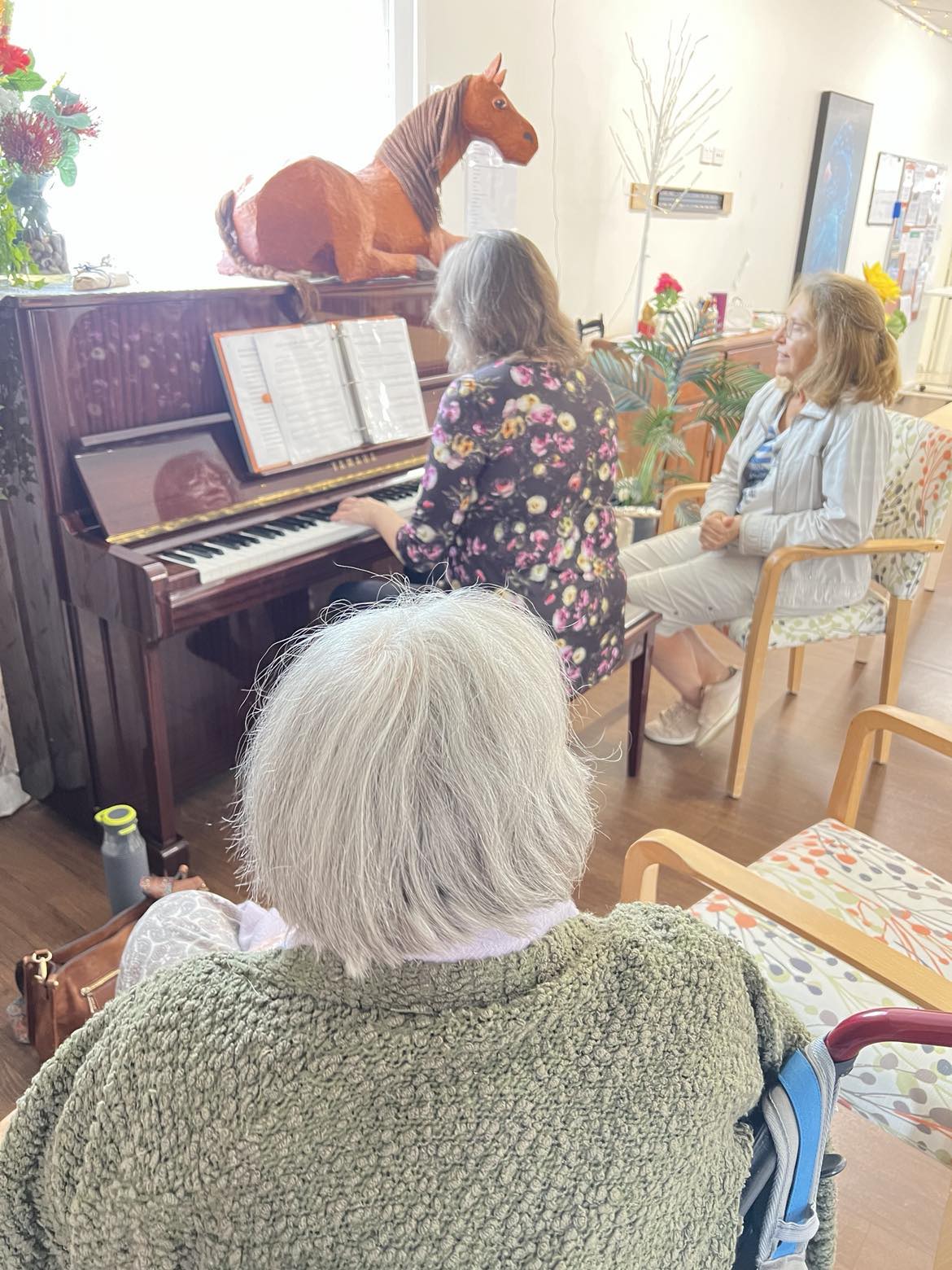 For the second time, I had the blessing of playing my musical memories set for my dear friend Ros and her Mum, who lives at Salem, a care home in Toowoomba (and other residents / staff in the room). A very special treat this time is that my dear friend Kym brought her flute and played along with me for most of the songs. We three musketeers had the best time sharing music together in this way, having all taken piano lessons together on Friday afternoons after school almost 50 years ago! Because it went so very well, Kym is going to join me in playing at my Mum-in-law’s care home next week back in Brisbane – what a blessing!