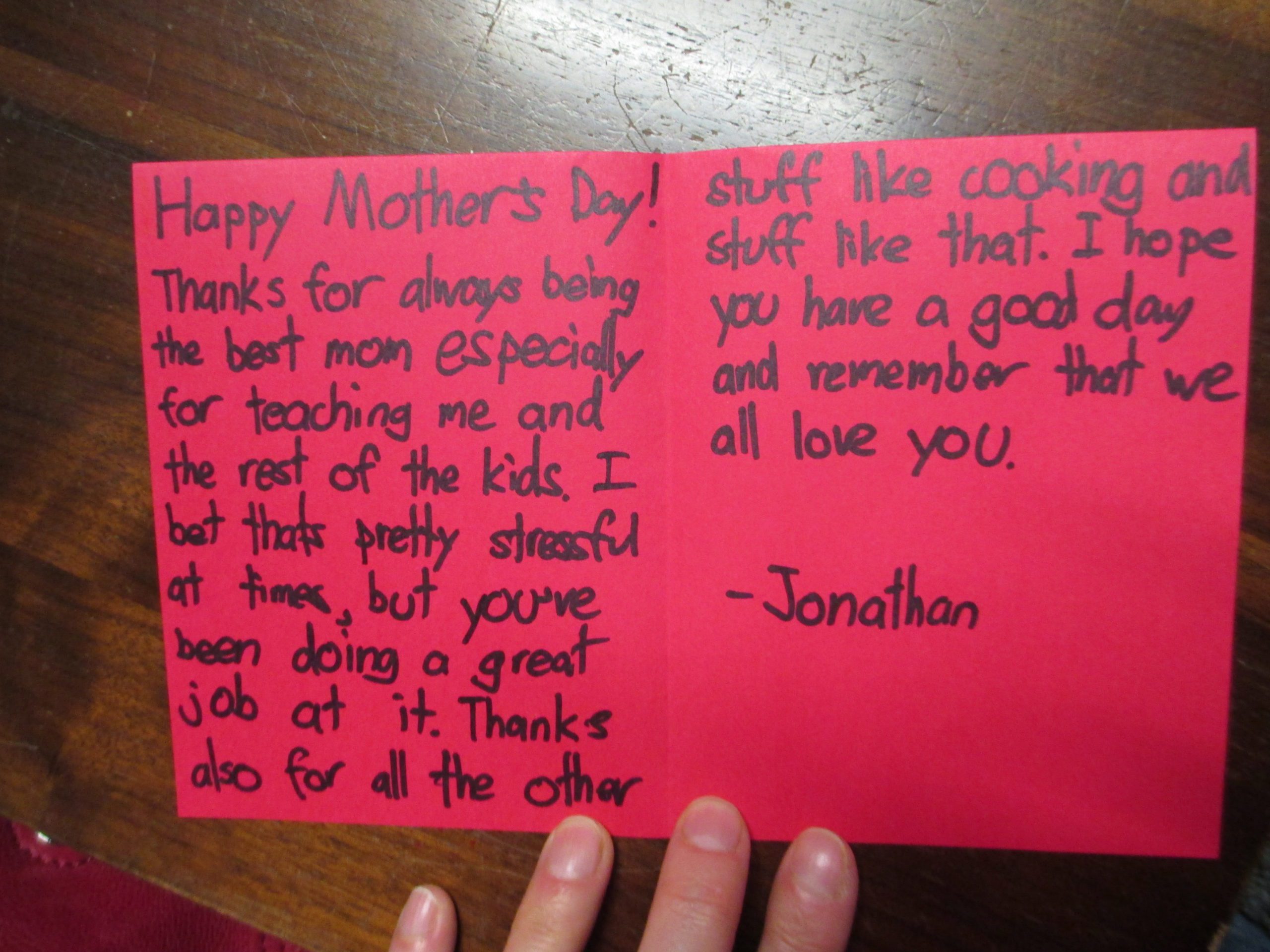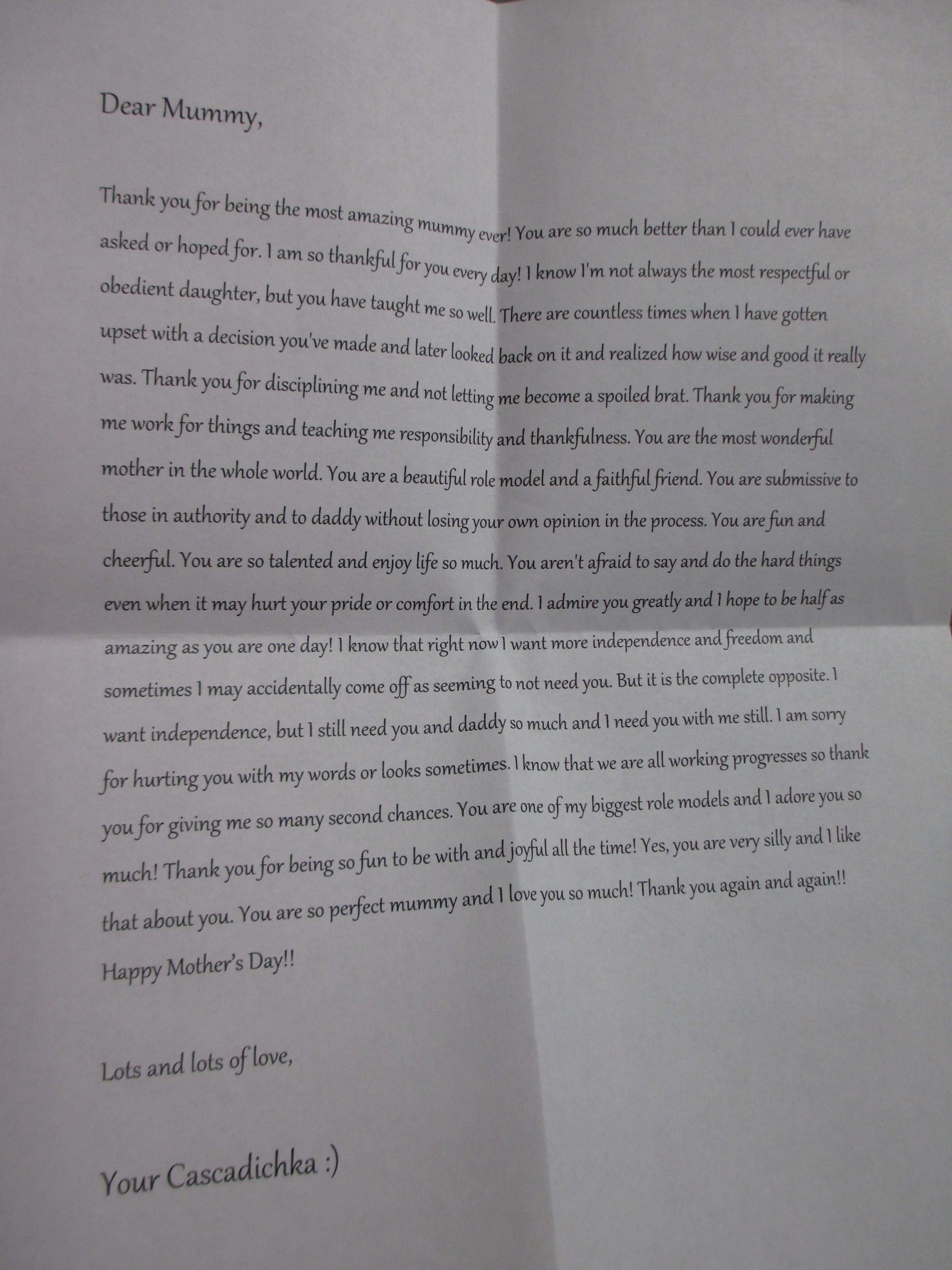 My beautiful children have blessed me and brought me joy every single day they’ve been alive . . . but I had the presence of mind to actually take photos of their beautiful cards this year. I love them so much – they’re the best kids ever! I treasure every card, poem, encouragement, gift in my heart – being their Mum / Mummy is the best gift and highest honor I’ve ever received! Thank you, God, for this privilege!