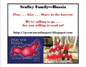 * automated giving (automatic monthly deductions from your checking or savings account – click here for the form – be sure to write “Sculley – Russia” in the space under “recommended giving”). Once you print out and fill in the form, please mail it to the address indicated at the bottom of the form.