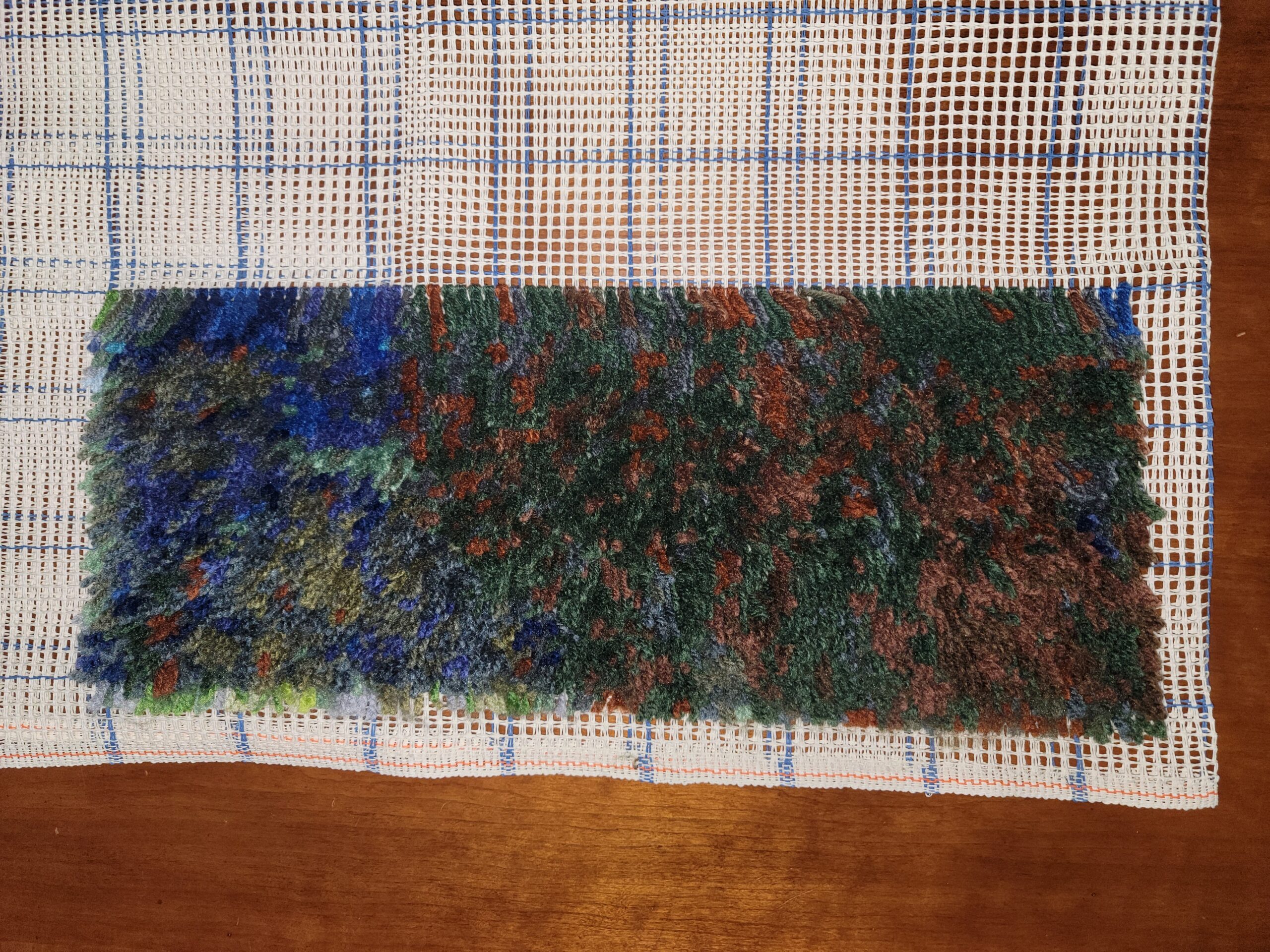 March 2nd, 2026: After the first couple of days of getting back into this beloved craft (which I have missed so much, not having done any for three years), I realized my mistake in not ordering enough yarn. The pic2pat pattern tells how many skeins of DMC floss each color needs, and on the day I ordered the yarn, I absentmindedly used those numbers instead of calculating the number of packages of pre-cut latch hook yarn (by dividing the number of stitches for each color by 320, the number of strands in each package). I ordered the rest of the packages, and thankfully had enough to work with while that order was being processed, shipped, and delivered!