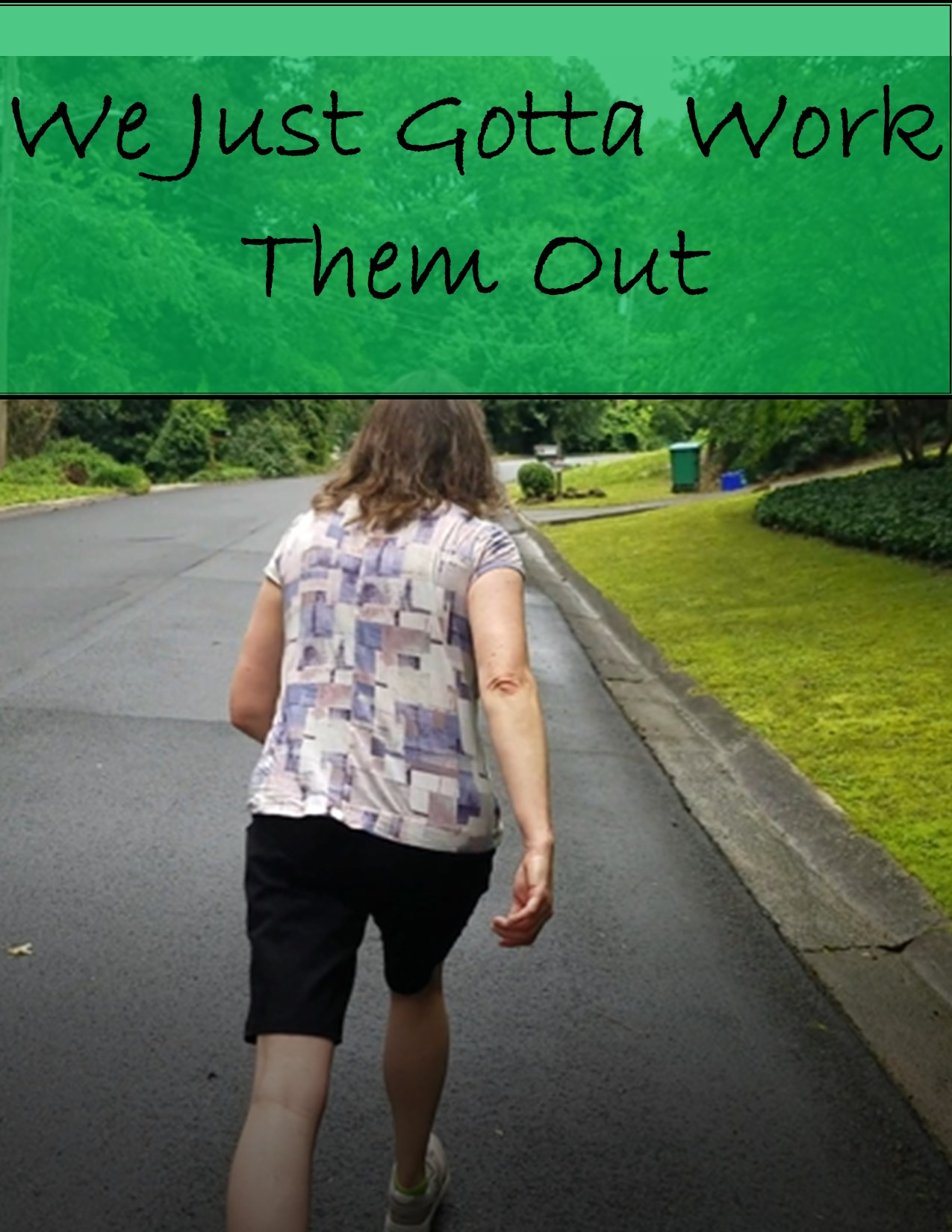 Words by me: Lately, we’ve been wanting more of that energy. Ooh, it’s good to be in shape! Maybe we’re gonna need some discipline to help improve our moods – uh oh, look what we’ve done! We don’t know, but we’ve been told that sugar’s bad and water’s gold. Early to bed, early to rise! All we think about affects our lives. When we’re couch potatoes, we often dream and think thoughts that swirl. Whipping into shape is overdue! We just gotta work them out – strong muscles gonna help us be healthy, and when we exercise frequently, then we’ll be walking for an hour ‘fore we know it and our stresses relieve. Maybe we need consistent routines ‘cause we’ve had poor boundaries, ooh, all over town. Maybe we’ve gotta give ourselves room to practice creativity – oh, look what we’ve done! Maybe we need companions on the way ’cause we are social creatures – ooh, that’s who we are. We don’t know but we’ve been told that sugar’s bad and water’s gold. Early to bed, early to rise! All we think about affects our lives. When we’re couch potatoes, we often dream and think thoughts that swirl. Whipping into shape is overdue! We just gotta work them out – strong muscles gonna help us be healthy, and when we exercise frequently, then we’ll be walking for an hour ‘fore we know it and our stresses relieve. We just gotta work them out – strong muscles gonna help us be healthy, and when we exercise frequently, then we’ll be walking for an hour ‘fore we know it and our stresses relieve.