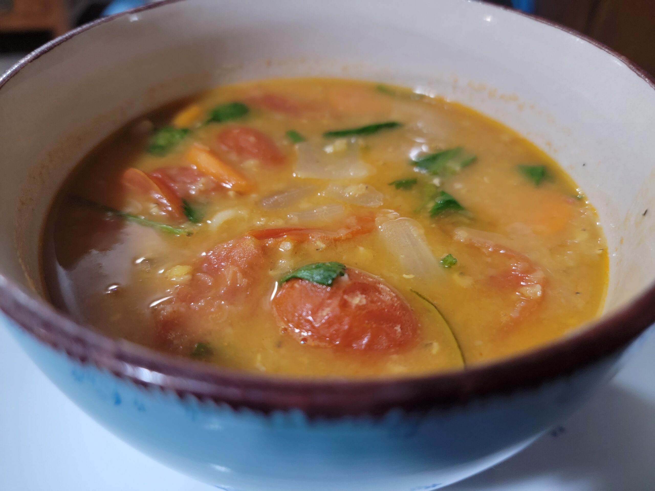 Add lentils, cherry tomatoes, 8 cups vegetable broth, salt, and pepper. Bring to a boil and them simmer for 20 minutes. Stir occasionally.